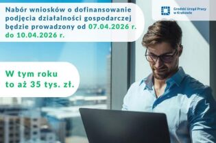 Nabór wniosków o dofinansowanie działalności gospodarcze prowadzony przez Grodzki Urząd Pracy w Krakowie.